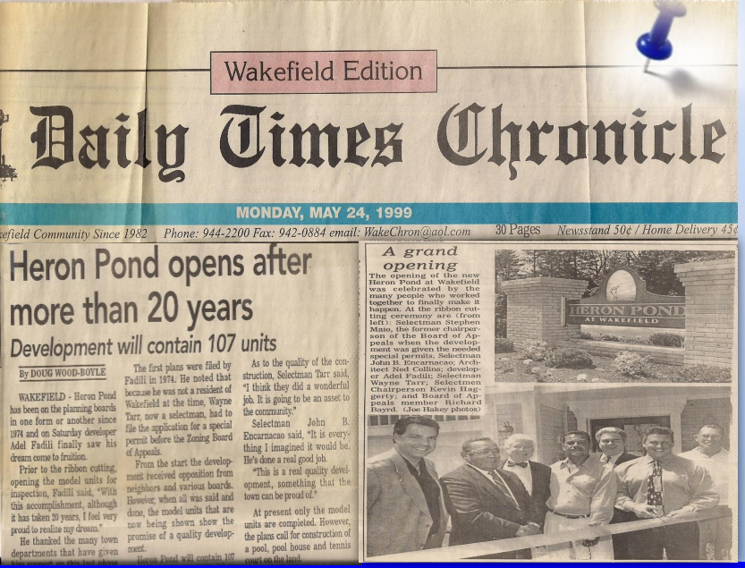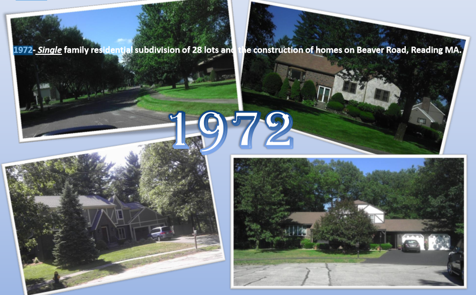 1973- Single family residential subdivision of 12 house lots and the construction of 12 homes on Scott Lane, Wakefield MA.